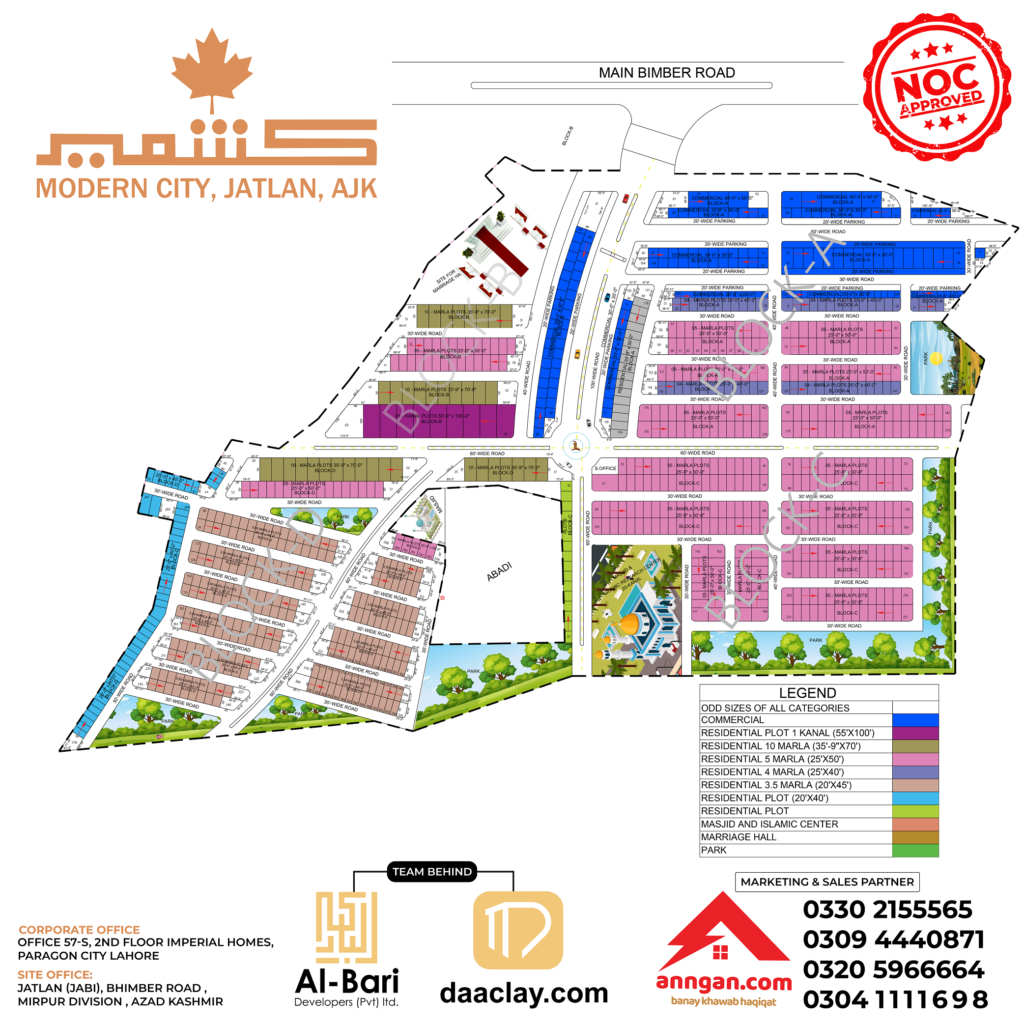 For The First Time In Kashmir, A Well-Planned Housing Scheme Has Been Launched As ‘Kashmir Modern City’ By Al-Bari Developers(Pvt) Ltd. In Collaboration With Leading Project Marketing And Management Company, Daaclay.com and Exclusive Sales Partner, ANNGAN.COM.
